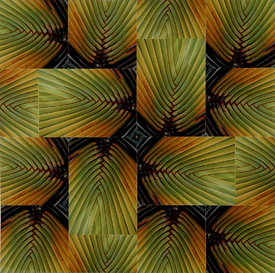 Fächerpalmenblätter aus einem Hotelgarten auf Guadeloupe, Karibik