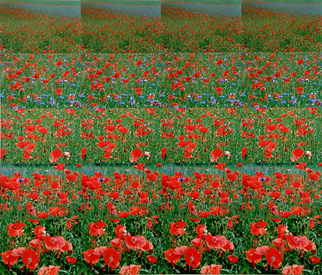 Mohn in unterschiedlicher Entfernung auf einer Wiese beim Grenzübergang in Weil am Rhein